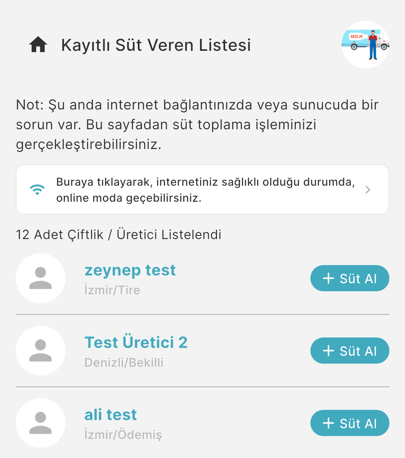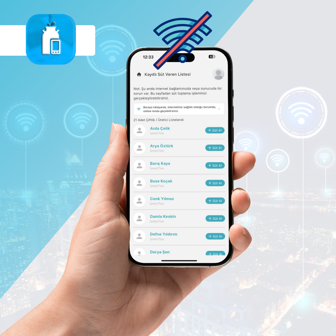 İnternetin çekmediği ya da hiç olmadığı bölgelerde bile Sütçü Mobil ile veri girişine sorunsuz devam edebilirsiniz. Gelişmiş offline mod özelliği sayesinde toplayıcı, bağlantı olmadan da tüm verileri sisteme kaydeder ve internet erişimi sağlandığında bu veriler otomatik olarak aktarılır. Kullanıcılar offline kaydedilen bilgileri anında görebilir, aktarım tamamlandığında ise tüm veriler eksiksiz şekilde ekranlarda görünür. Üstelik sadece internet yokken değil, server bağlantısında geçici bir sorun yaşandığında da toplama işlemleri asla durmaz; sistem kayıt almaya devam eder ve bağlantı sağlandığında tüm bilgiler güvenle aktarılır. Böylece süt toplama süreci her koşulda kesintisiz bir şekilde devam eder.