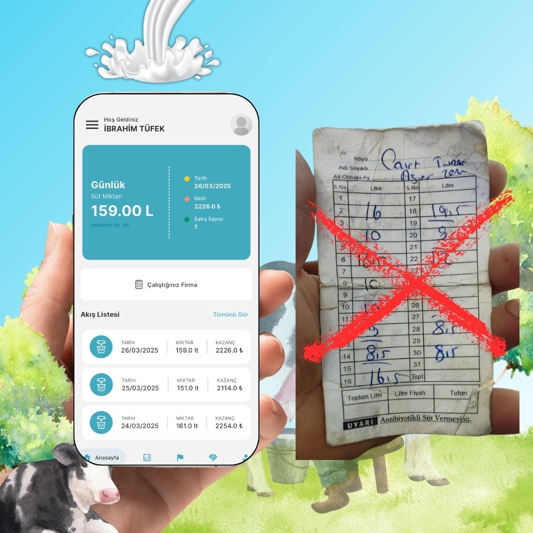 Üreticiler artık karnelerini toplamayacak uygulama üzerinden günlük haftalık aylık istediği gibi süt miktarını görebilecek.